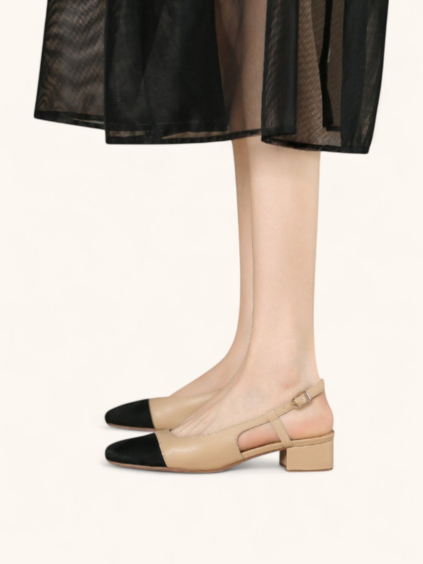 Ces ballerines à bride arrière combinent style classique et confort optimal. Leur bout contrasté et leur petit talon carré en font un choix idéal pour le bureau ou les sorties quotidiennes.