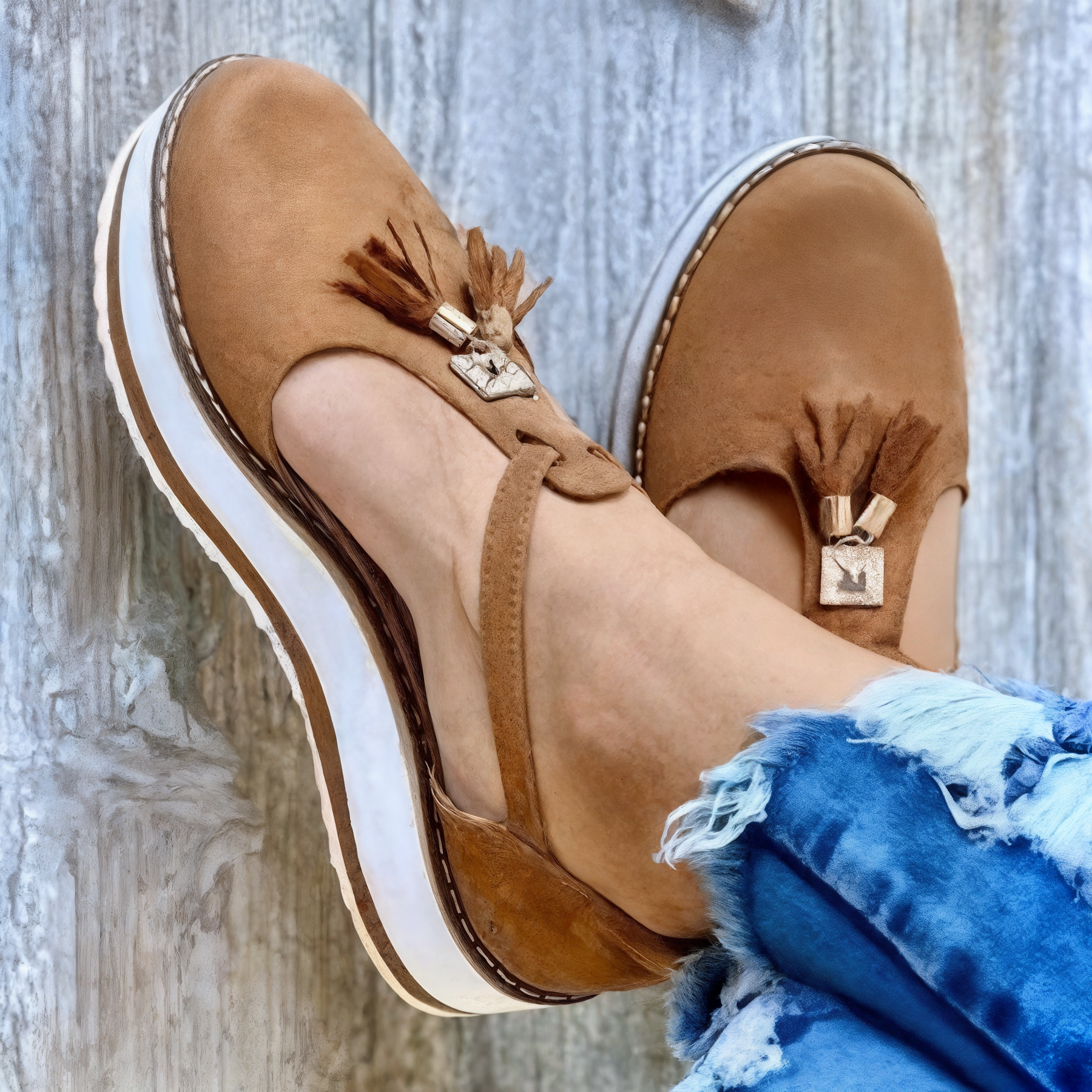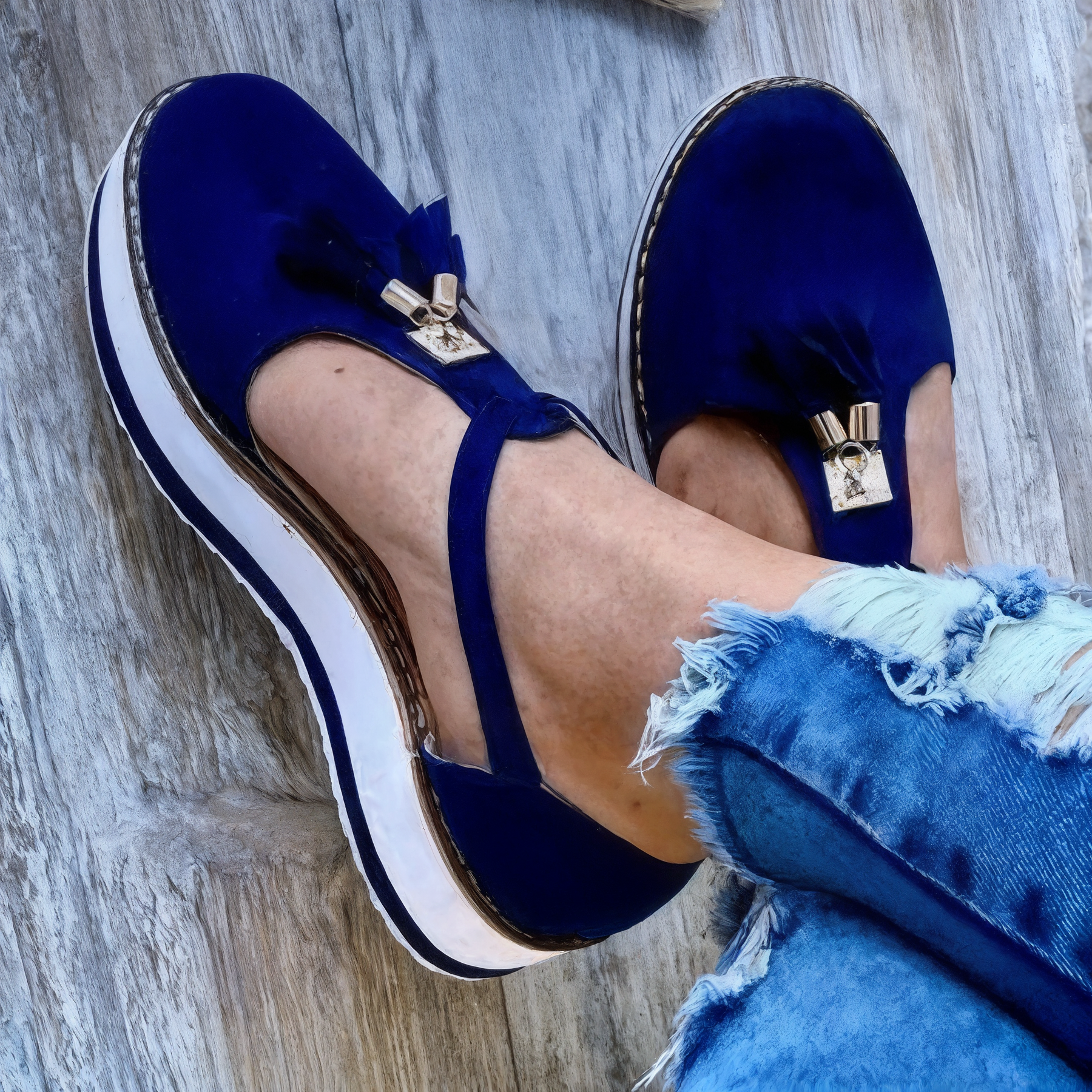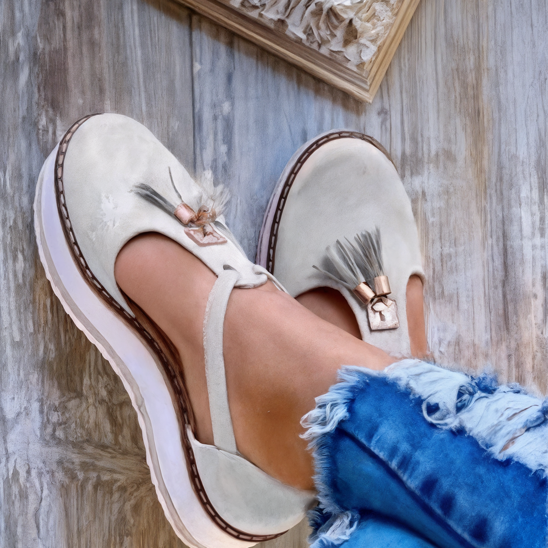 Ces sandales à plateforme combinent style et praticité avec leur semelle épaisse et leur design orné de pompons décoratifs. Leur maintien est assuré grâce à la bride discrète, idéale pour une marche confortable au quotidien.