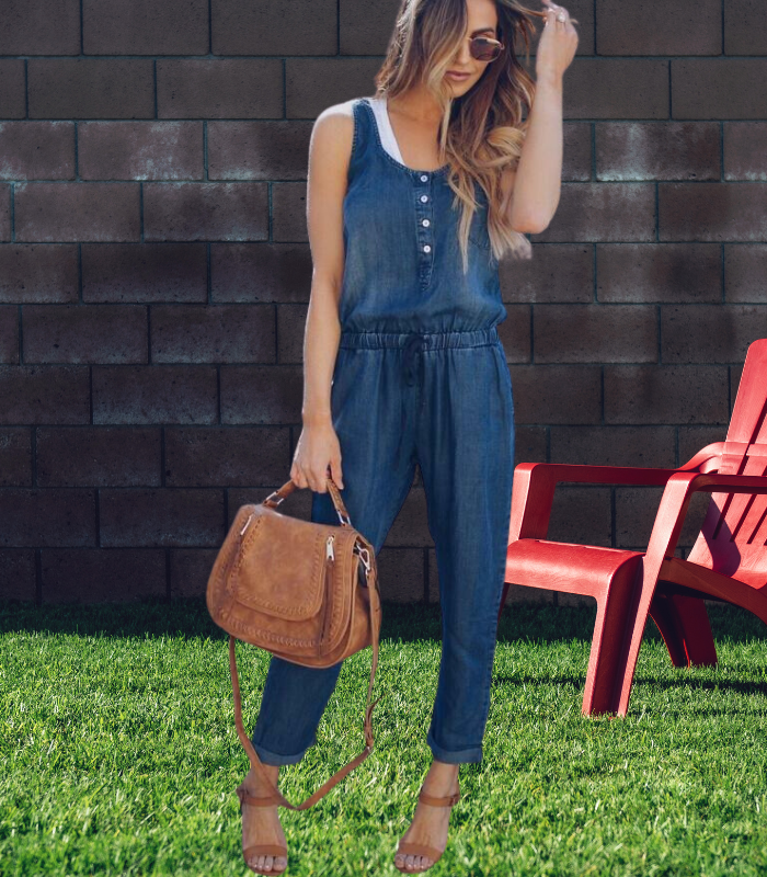 Cette combinaison sans manches allie simplicité et confort pour un look estival parfait. Sa coupe fluide, sa taille élastique avec cordon et ses boutons décoratifs la rendent aussi pratique que tendance.