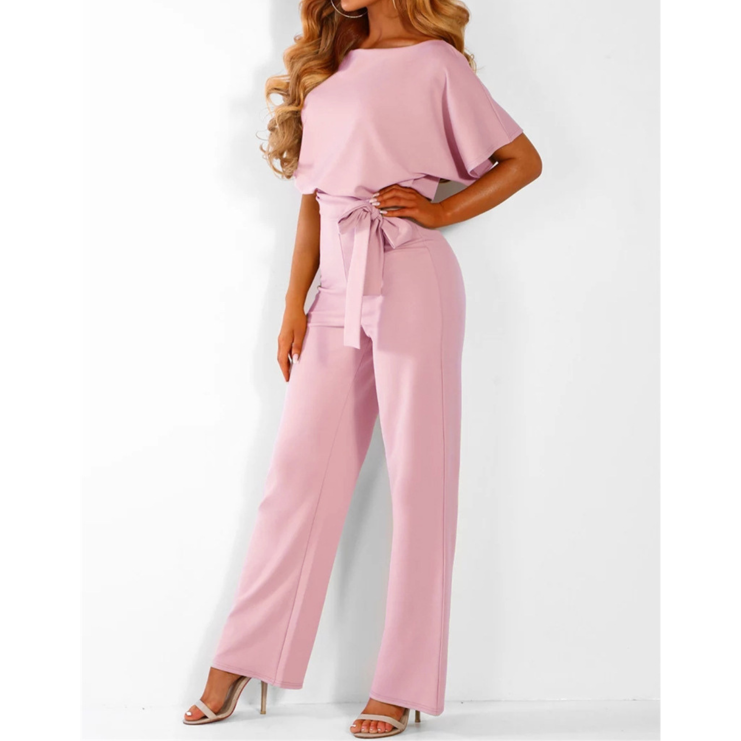 Combinaison Élégante Ceinturée à Jambes Larges et Manches Courtes | Sophistication Sans Effort pour Toutes les Occasions