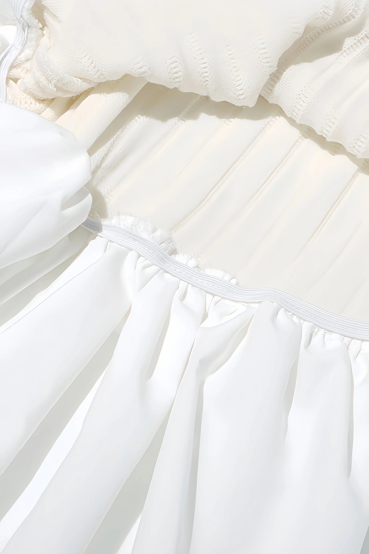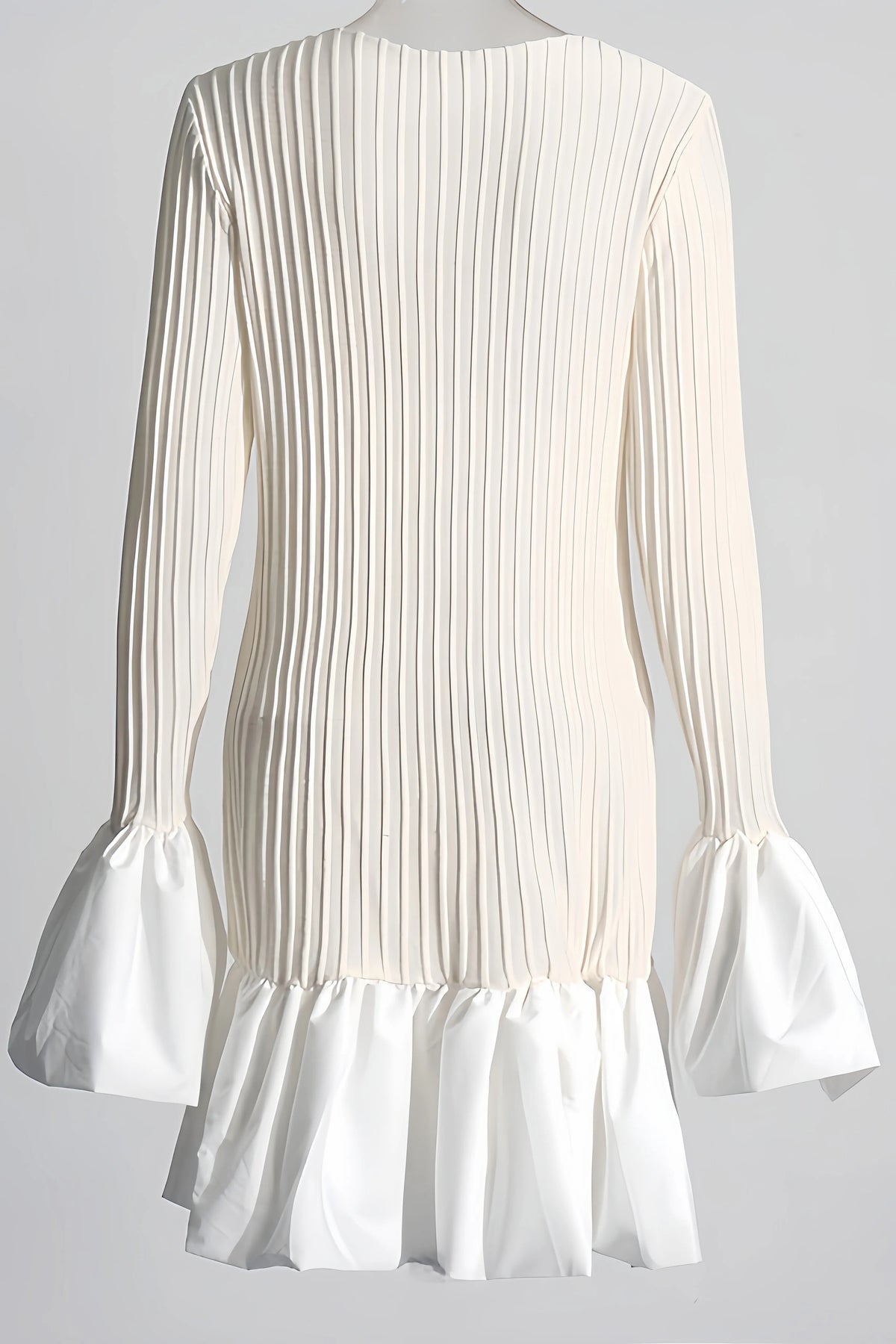 Cette robe courte plissée avec manches bouffantes évasées est parfaite pour un look chic et sophistiqué. Son design structuré et sa coupe originale subliment la silhouette pour toutes vos occasions élégantes.