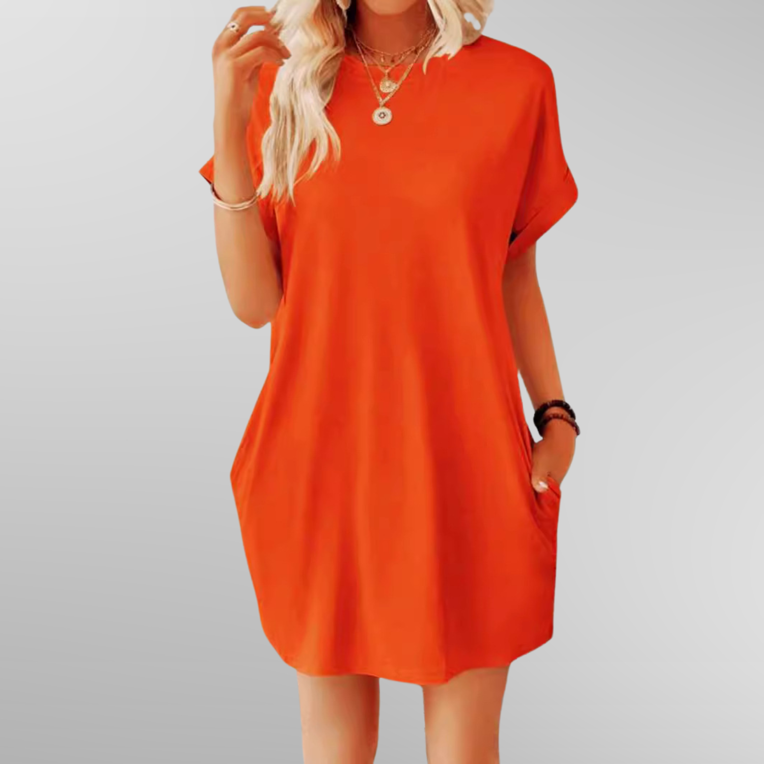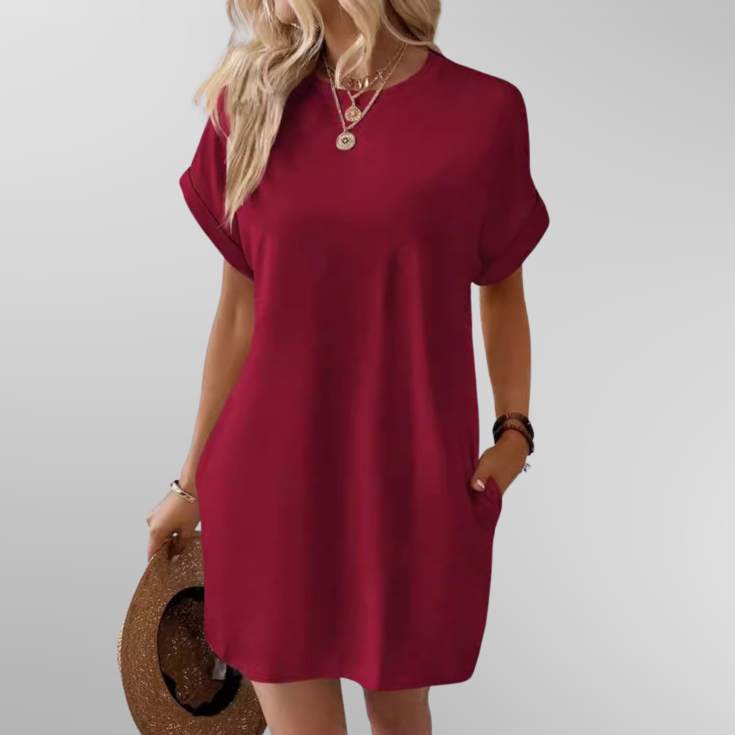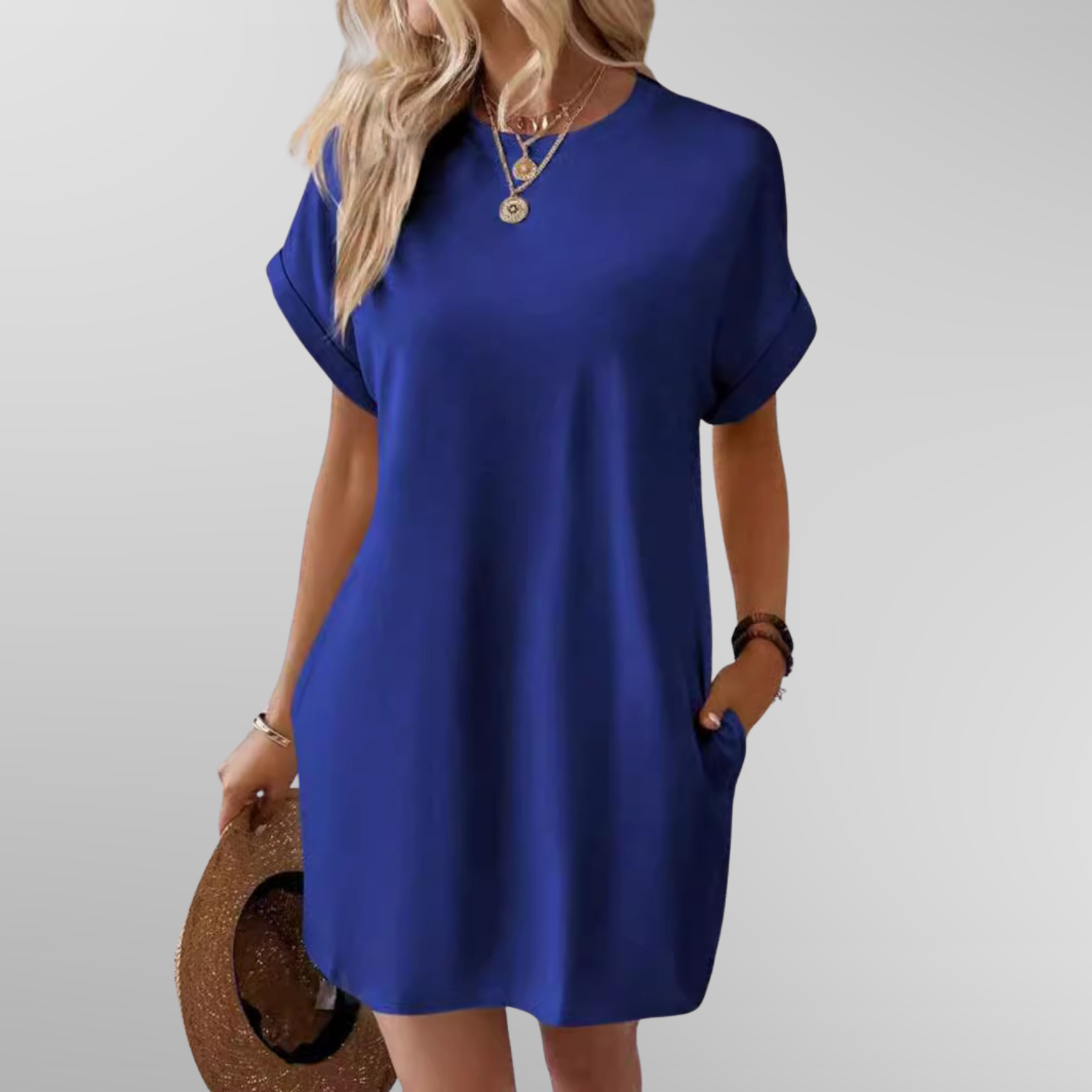 Robe T-Shirt Décontractée à Manches Repliées | Confort Quotidien Sans Effort