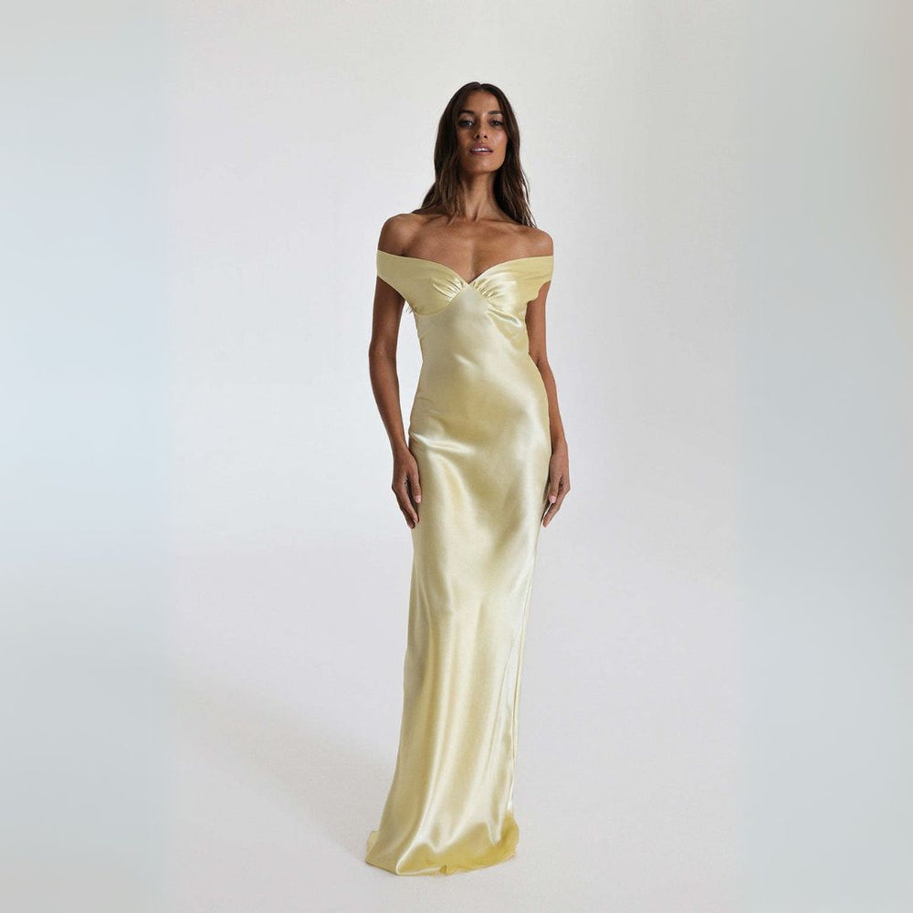 Robe Longue Épaules Dénudées Satinée | Élégance Luxe