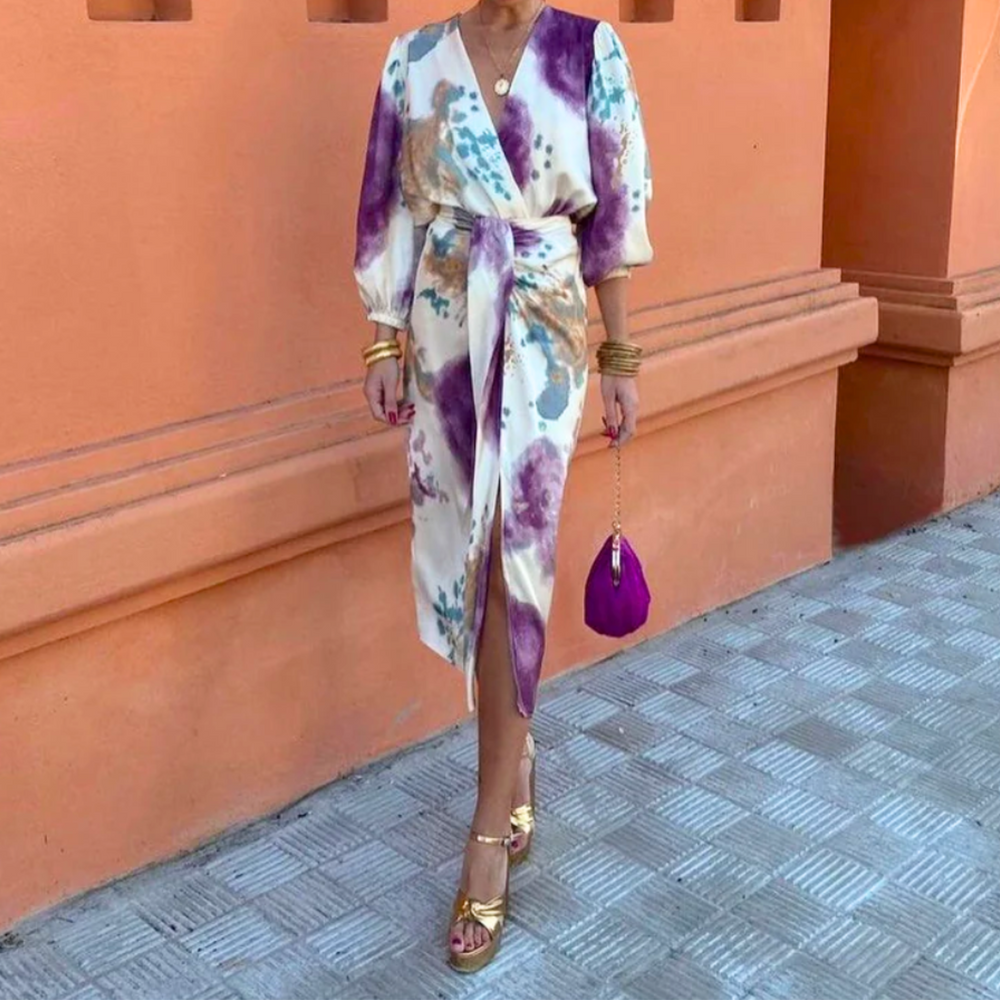 Robe mi-longue à fente florale | Parfaite pour balades estivales