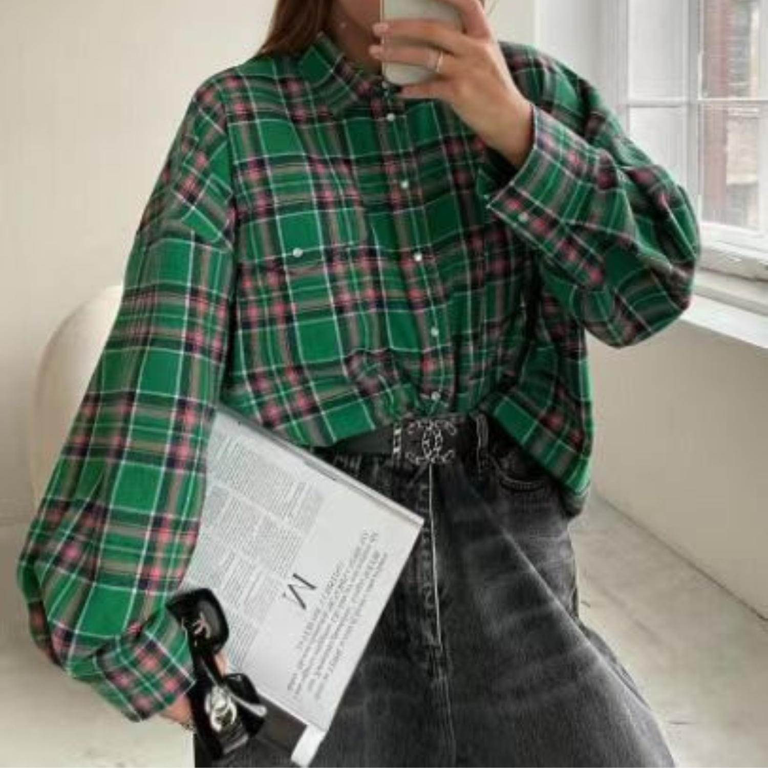 Ajoutez une touche de caractère à votre garde-robe avec cette chemise à carreaux. Sa coupe oversize apporte une allure décontractée, parfaite pour superposer sur un t-shirt blanc ou porter seule. Les manches longues amples et les détails boutonnés offrent un style à la fois pratique et audacieux. Un basique modernisé, idéal pour vos journées casual ou vos looks street chic.