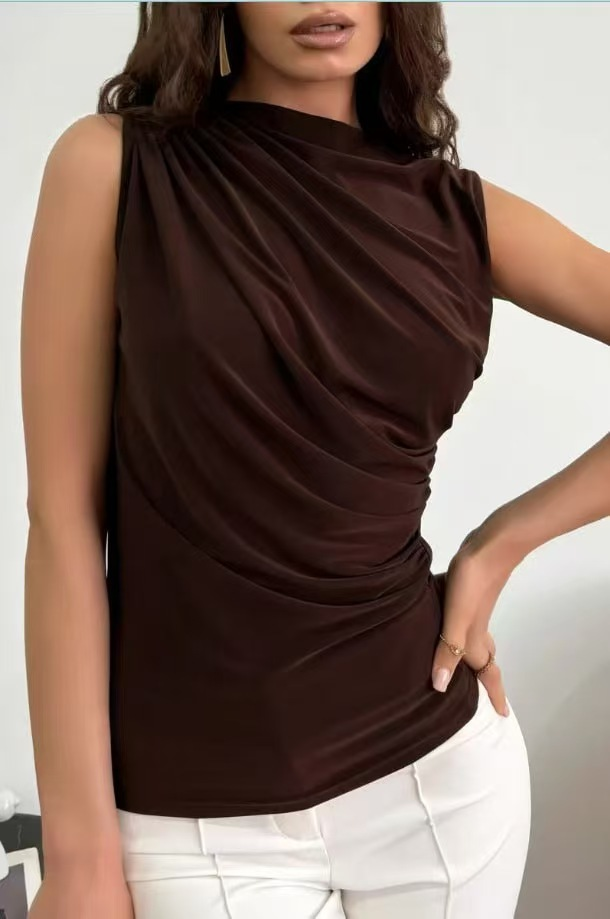 Ce haut sans manches à col montant apporte une touche sophistiquée à vos tenues du quotidien. Avec sa coupe ajustée et son style minimaliste, il se combine facilement avec un pantalon chic ou une jupe décontractée.