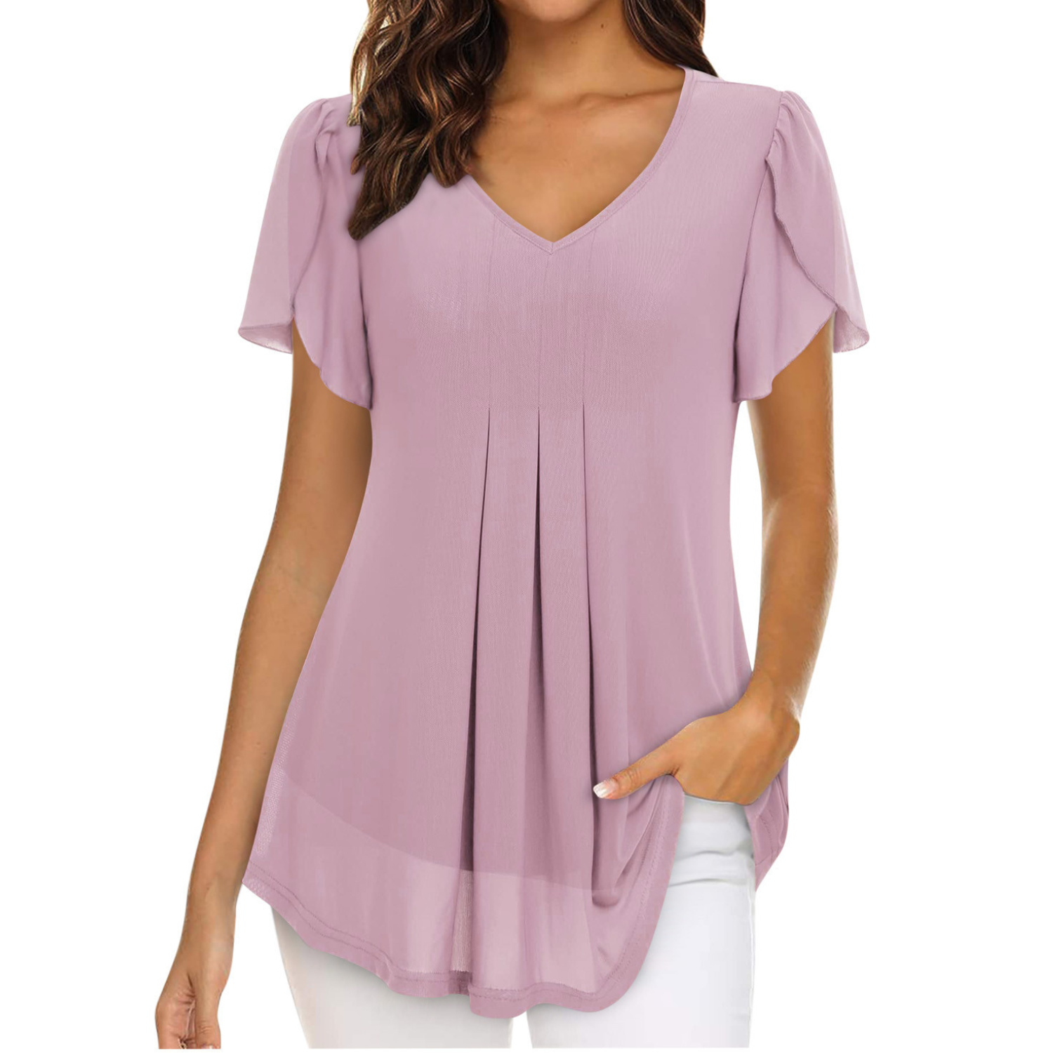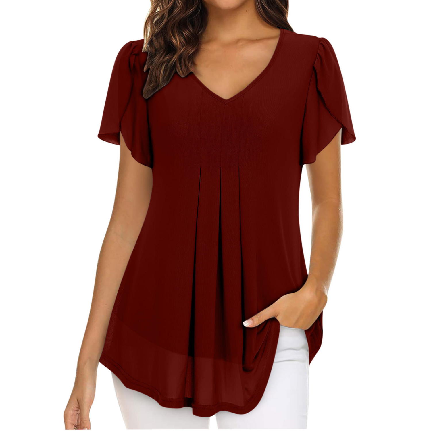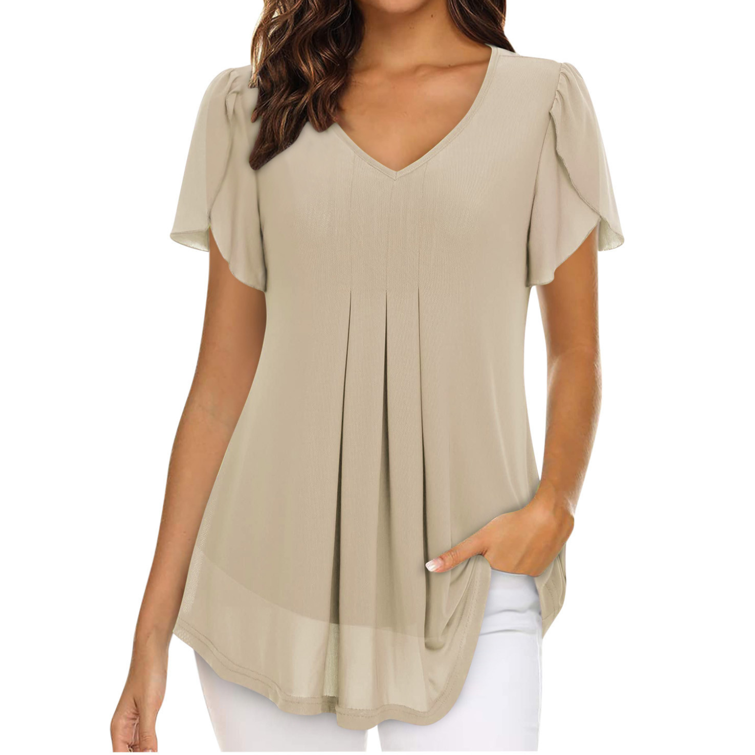 T-shirt ample col en V | Élégance décontractée pour journées ensoleillées