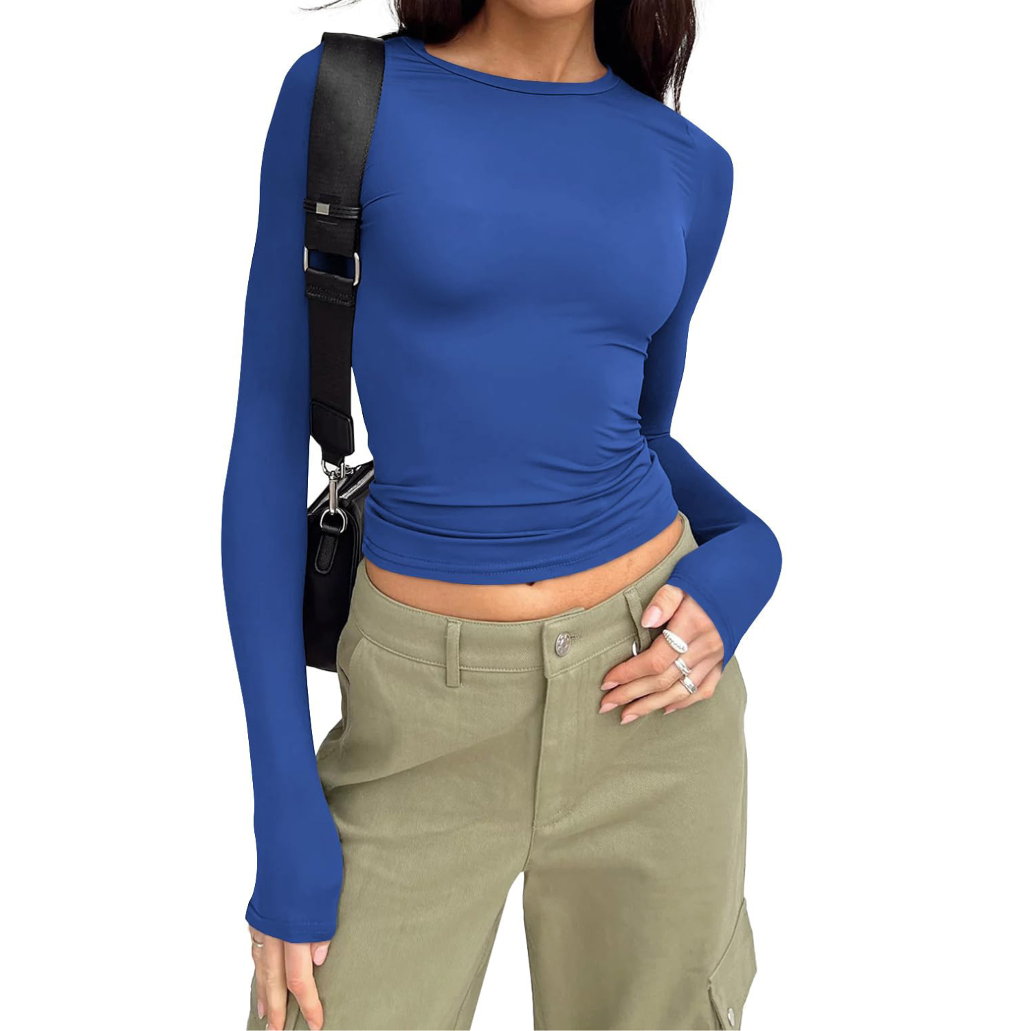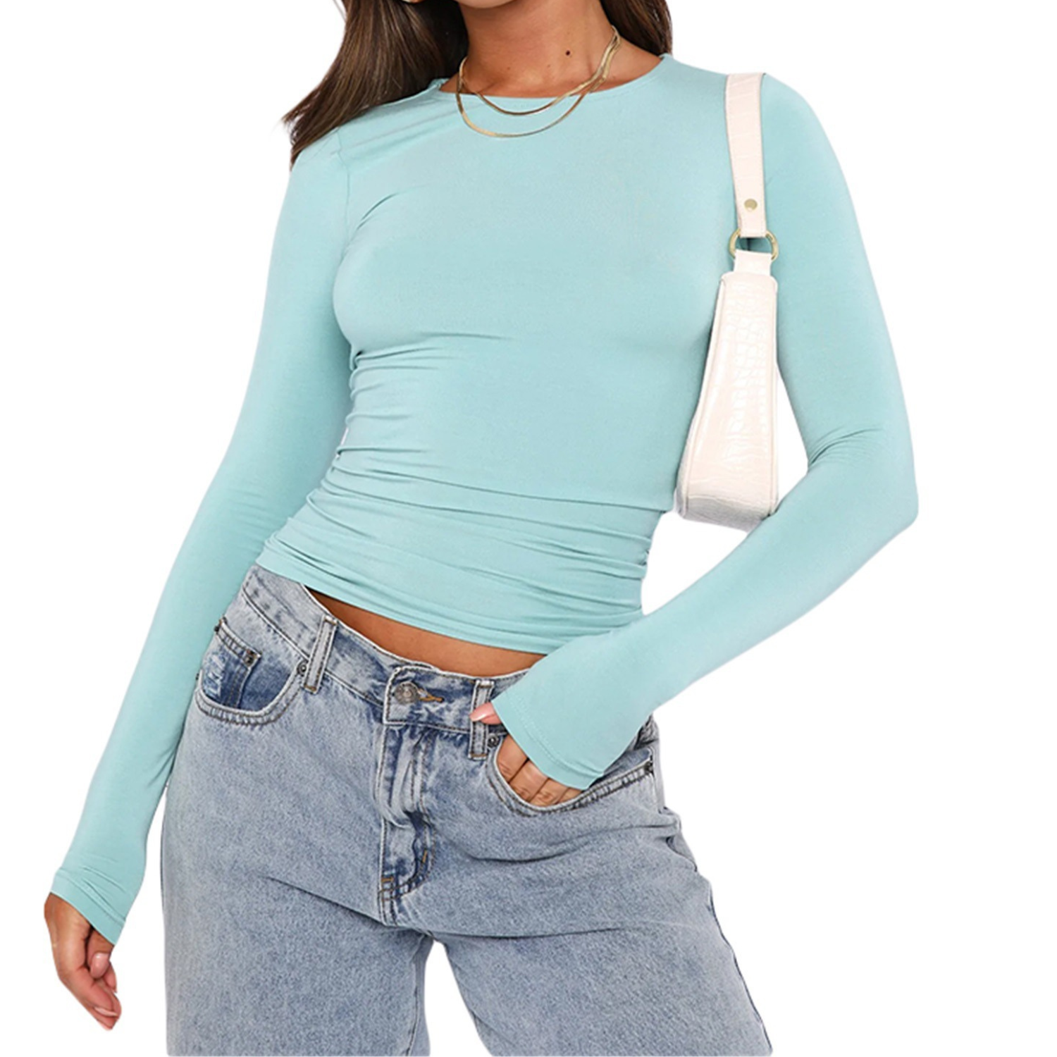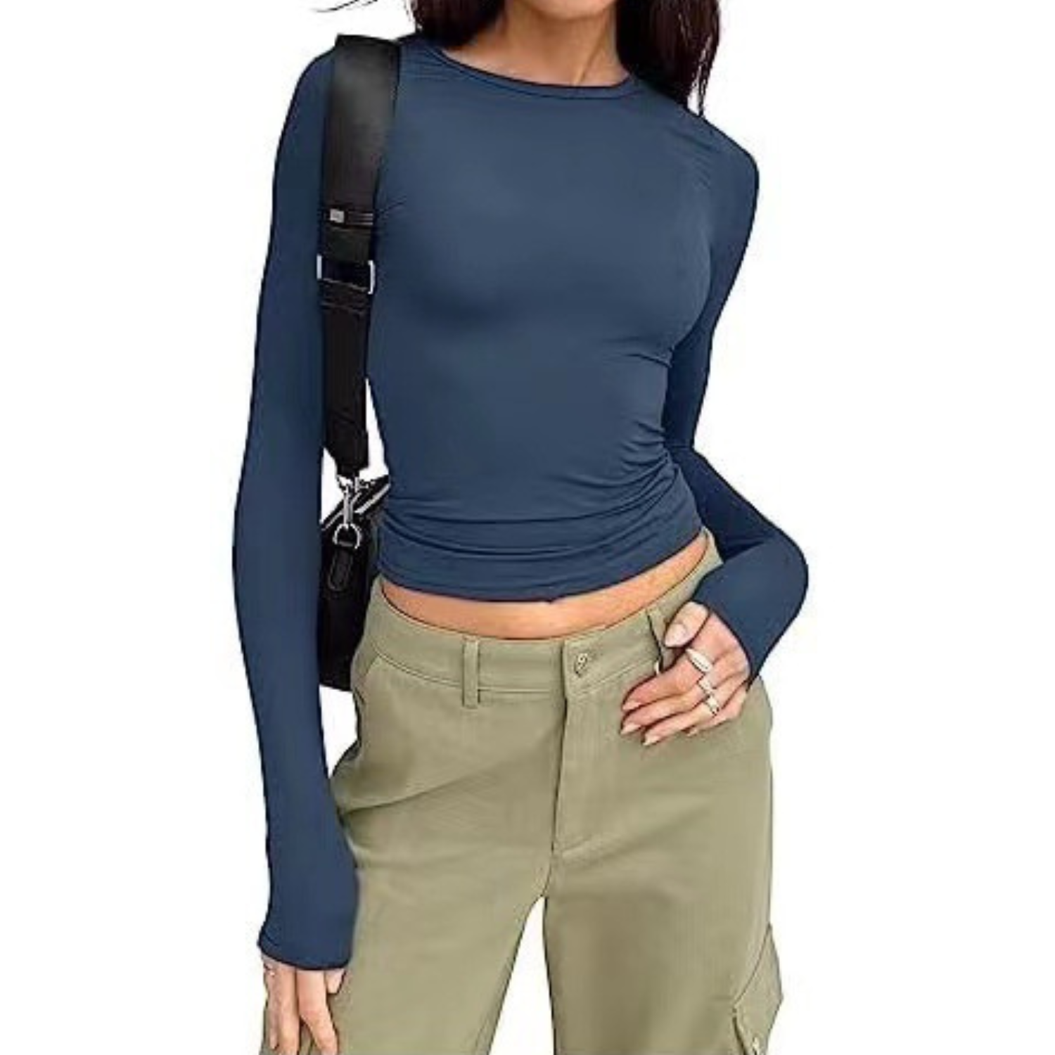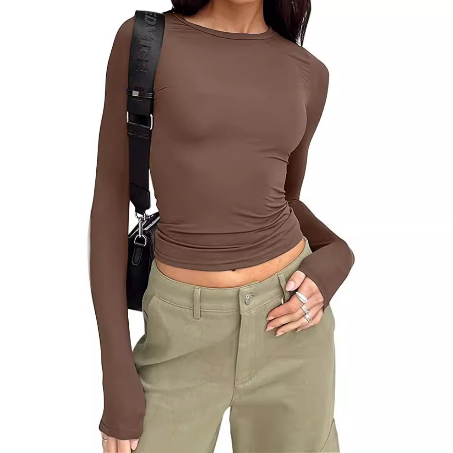 Misez sur une silhouette minimaliste et affirmée avec ce t-shirt manches longues à la coupe cintrée. Son design ajusté souligne les courbes tout en offrant un style moderne et épuré. Les détails froncés discrets au niveau de la taille ajoutent une touche flatteuse qui affine visuellement la silhouette. Parfait aussi bien pour un look casual chic que pour vos sorties du soir.