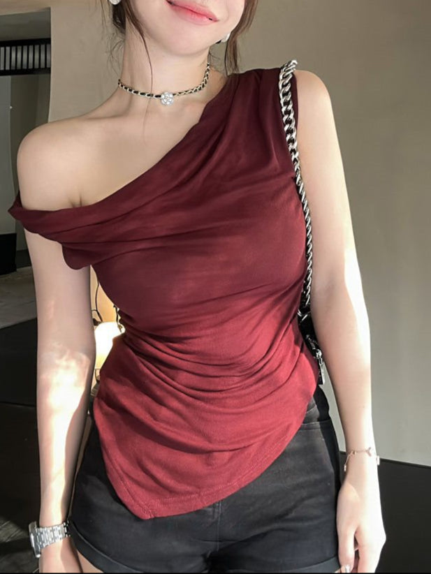 Haut asymétrique froncé | Parfait pour soirées et sorties urbaines