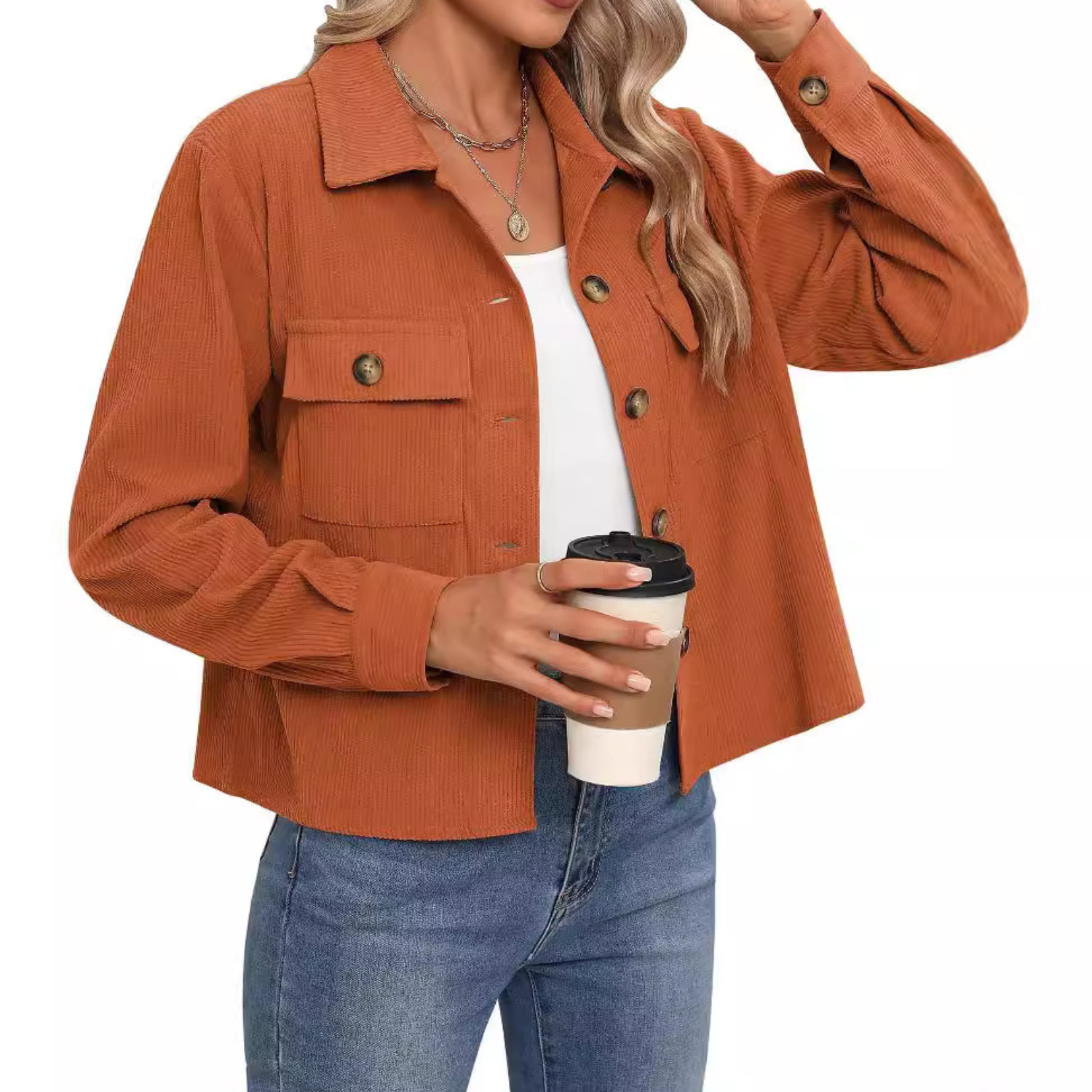 Cette surchemise en velours côtelé est la pièce idéale pour superposer vos tenues par temps doux. Sa coupe structurée et son col classique ajoutent une touche chic à n’importe quelle tenue. Parfaite pour un café ou une sortie en ville, elle allie style et confort sans effort.