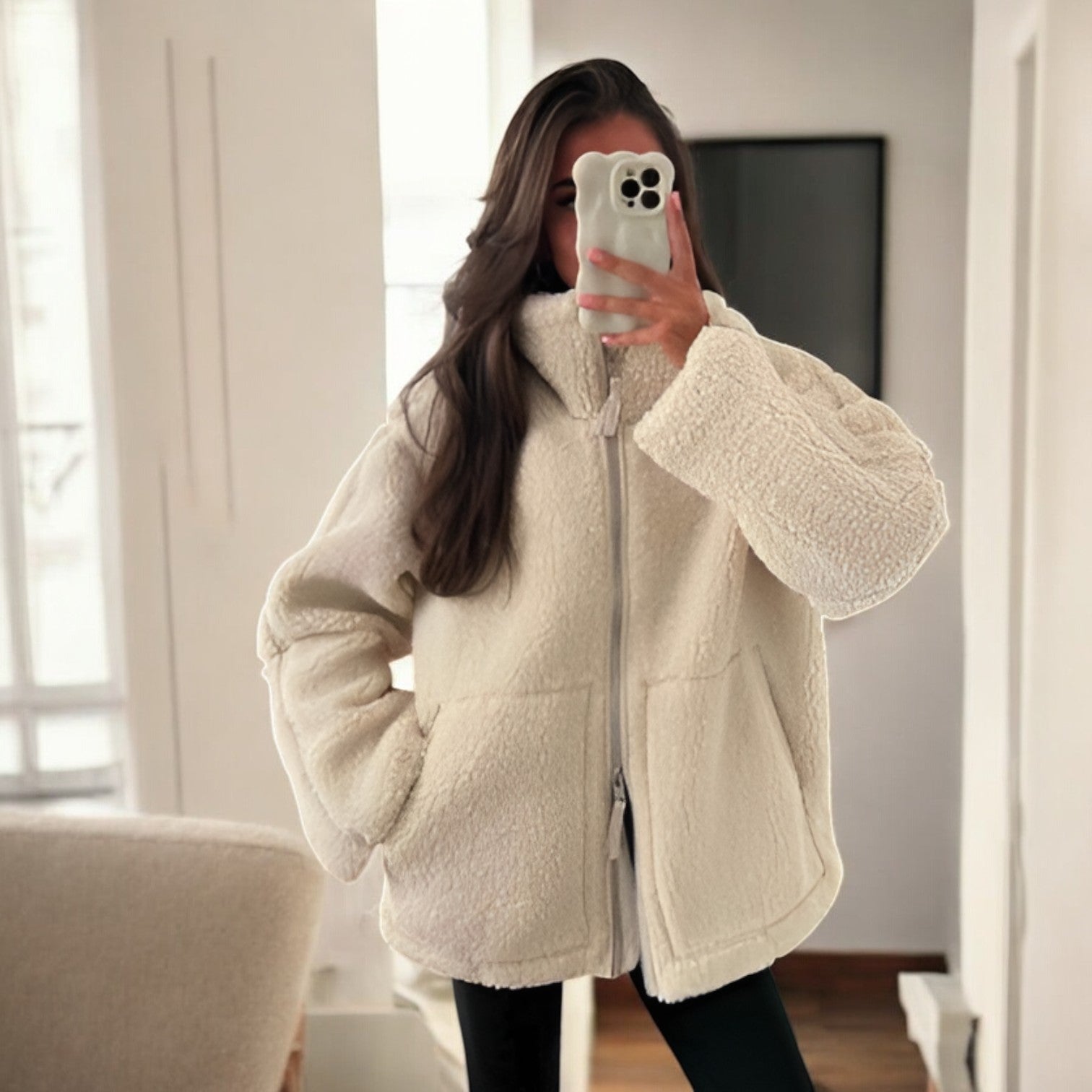 Cette veste oversize à col montant offre une protection optimale contre le froid tout en ajoutant une touche moderne à votre tenue. Sa matière douce et sa coupe ample en font une pièce idéale pour les journées décontractées ou les balades en ville.
